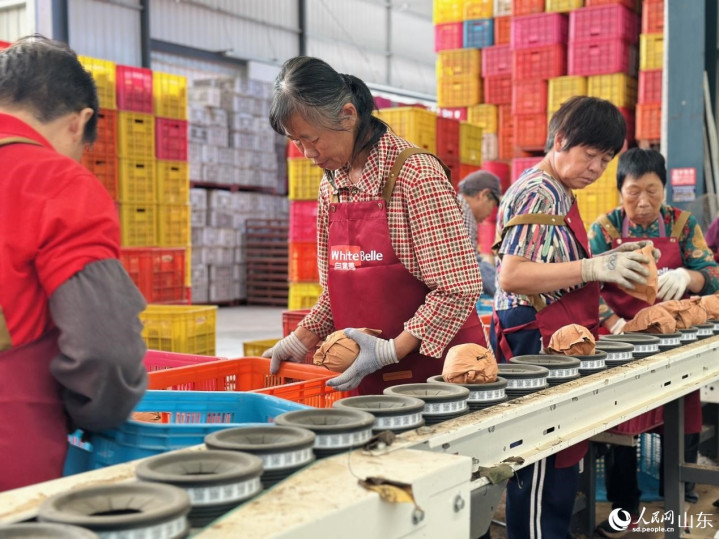 在莱阳市河洛镇大路村,村民任晓彤正通过社群团购和其他线上平台,将自家几十亩秋月梨卖得红红火火。隔壁车间里,自动化产线匀速运转,熬制好的梨膏被精准灌装成一颗颗透亮的梨膏棒棒糖。工人们动作麻利地封装、打包,成箱的产品堆满出货区,即将发往天南海北。
