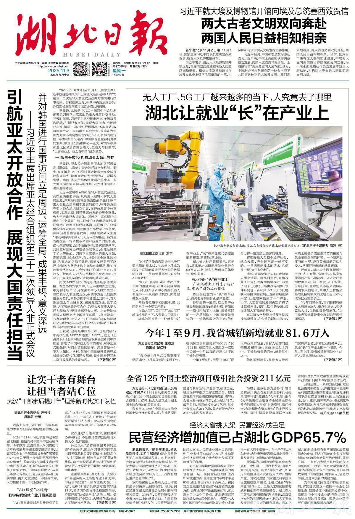 11月3日《湖北日报》1版。